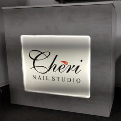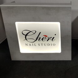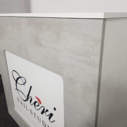 - Banco cassa con frontale in plexiglas retroilluminato a LED con il logo del tuo salone