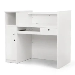 Con le sue dimensioni generose (120 x 60 x 105 cm), questo banco reception offre ampio spazio operativo per la gestione quotidiana delle attività. È dotato di ripiani, cassetti e vani interni che permettono di organizzare in modo efficace documenti, prodotti, strumenti da lavoro o dispositivi come il registratore di cassa.