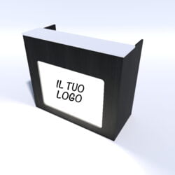 Banco cassa reception dotato di frontale in plexiglas illuminato a LED RGB facilmente personalizzabile.