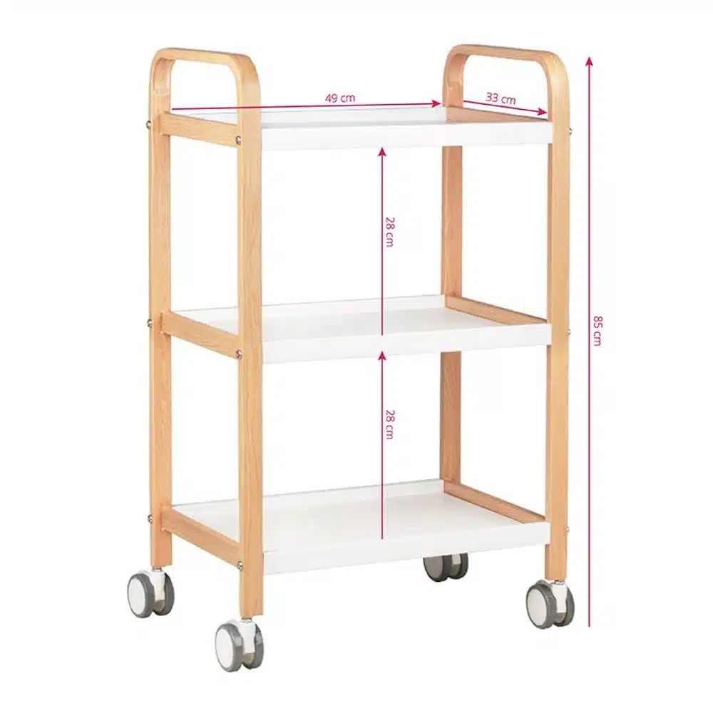 Carrello 3 ripiani in legno per estetista spa centro estetico massaggi ceretta