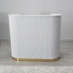 In un settore competitivo come quello della bellezza, distinguersi è fondamentale. Una reception elegante, con dettagli in linea con le ultime tendenze di design, può fare la differenza tra un cliente che sceglie il tuo salone o un altro. Un banco cassa di design, come quello in beige e oro, conferisce un tocco di lusso e modernità che eleva l’immagine complessiva del tuo salone.