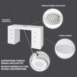 Tavolo manicure con aspiratore filtro tondo per estetista in legno laccato bianco cassettiera Regin Keopalia Ke131030